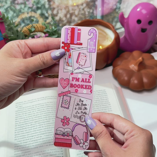 Add a touch of pink charm to your reading routine with this I’m All Booked Bookmark. Featuring books, flowers, and cozy icons, it’s the perfect blend of cute and aesthetic for book lovers. Handmade, double-sided, and laminated for durability, this bookmark is ideal for gifting or adding to your own collection.