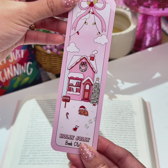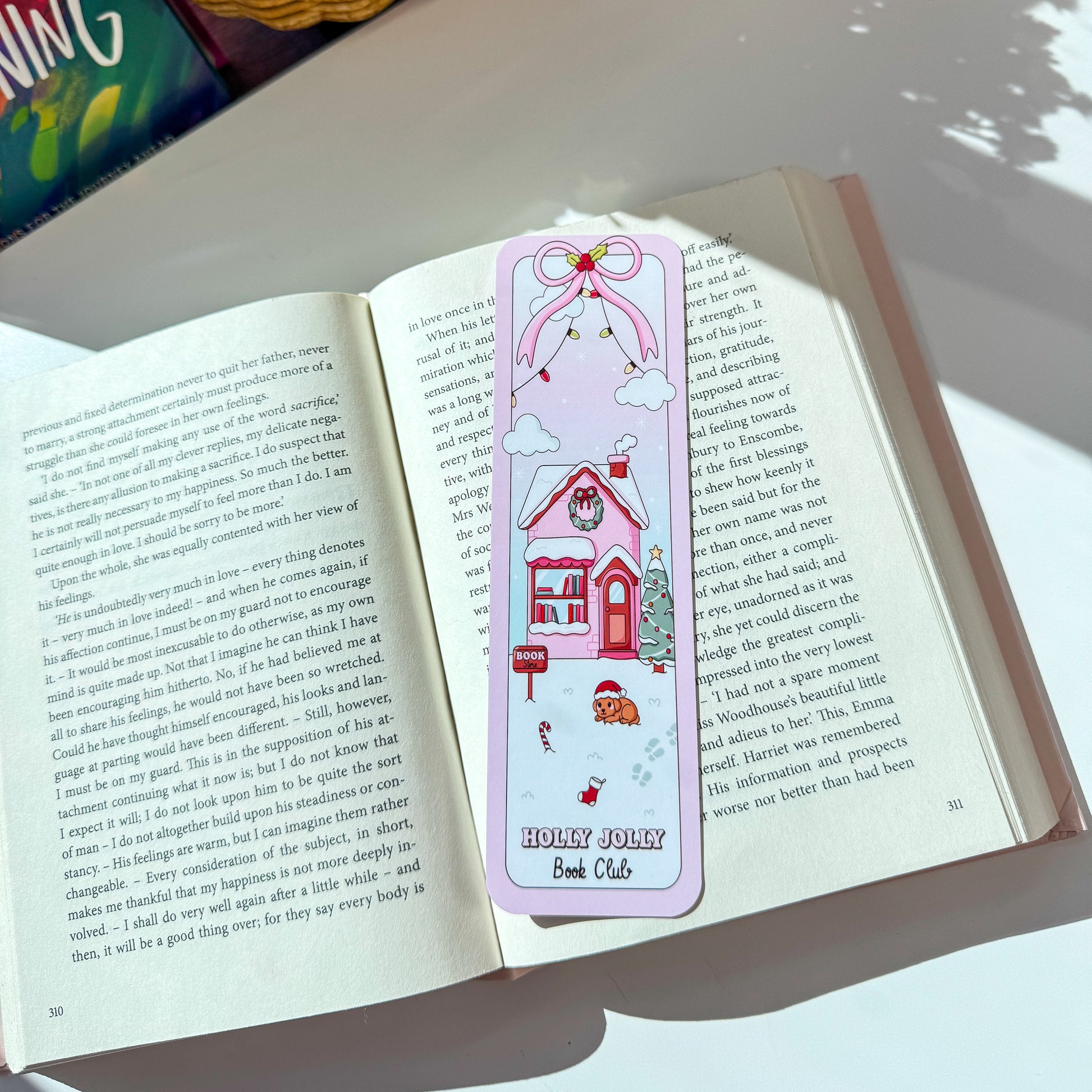 With a pastel Christmas house, books, and winter magic, this bookmark is perfect for cozy December reading.