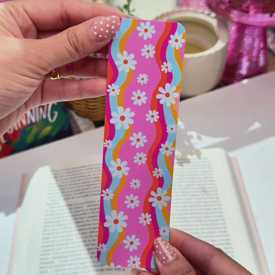 This groovy bookmark features playful waves and daisies in pink, orange, and blue — the perfect accessory for happy readers who love vintage vibes and colorful pages.