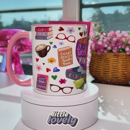 A dreamy bookish mug created for true bookworms. Featuring a whimsical purple latte cup, cute florals, hearts, and the phrase “bookworm’s paradise,” this mug adds magic to every sip.