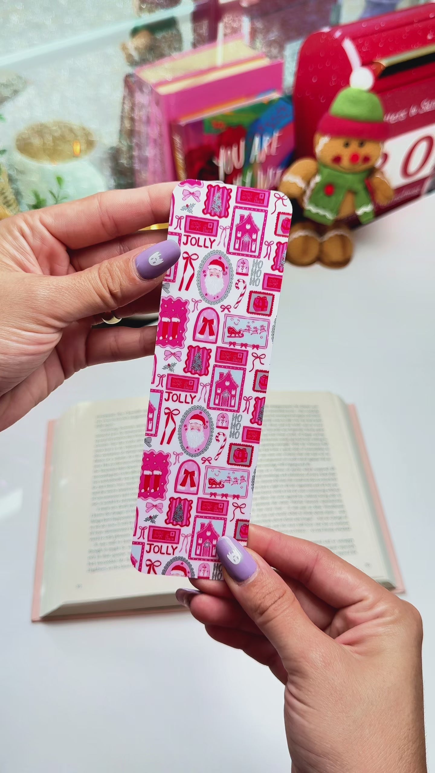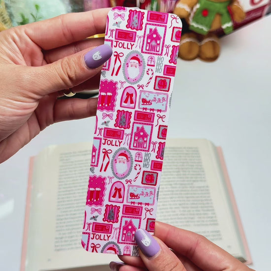 Bring festive cheer to your reading with this Christmas Santa Bookmark, featuring Santa Claus, presents, and holiday icons in pink and red tones. Handmade, laminated, and double-sided, it’s the perfect stocking stuffer or seasonal gift for readers.
