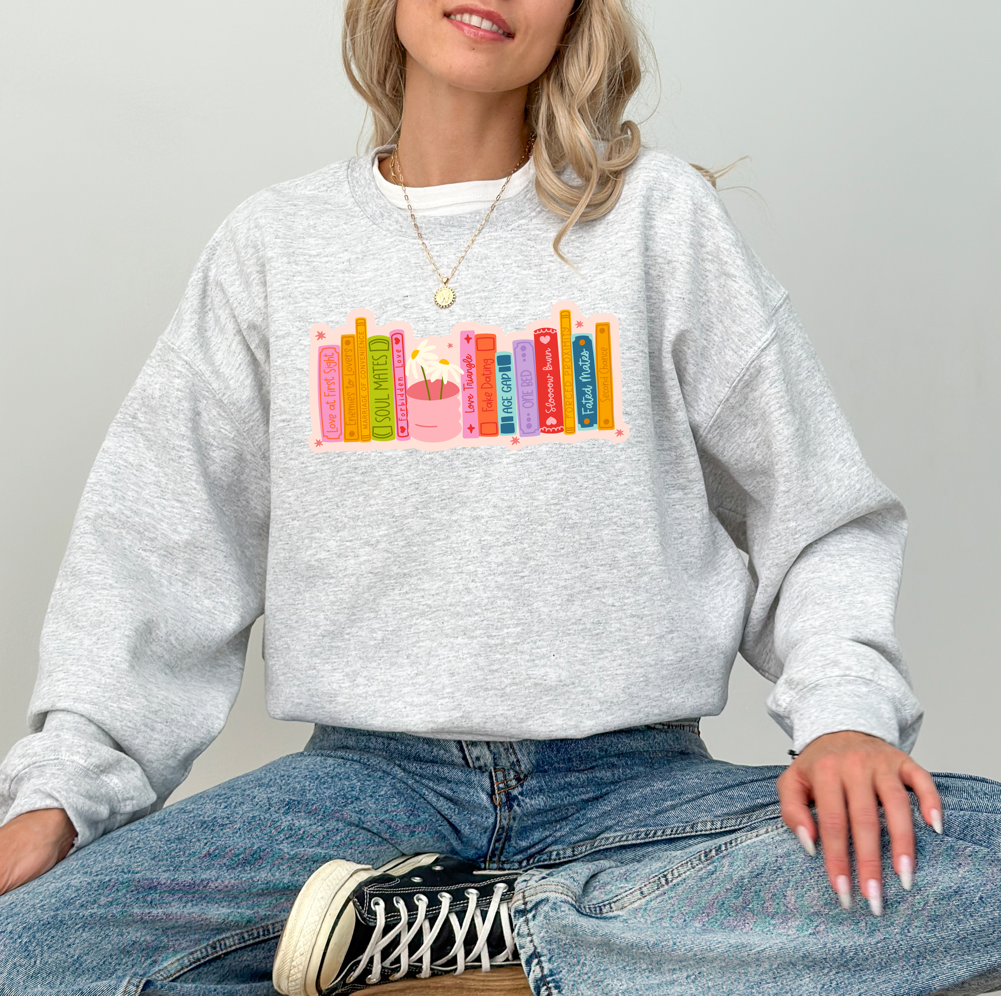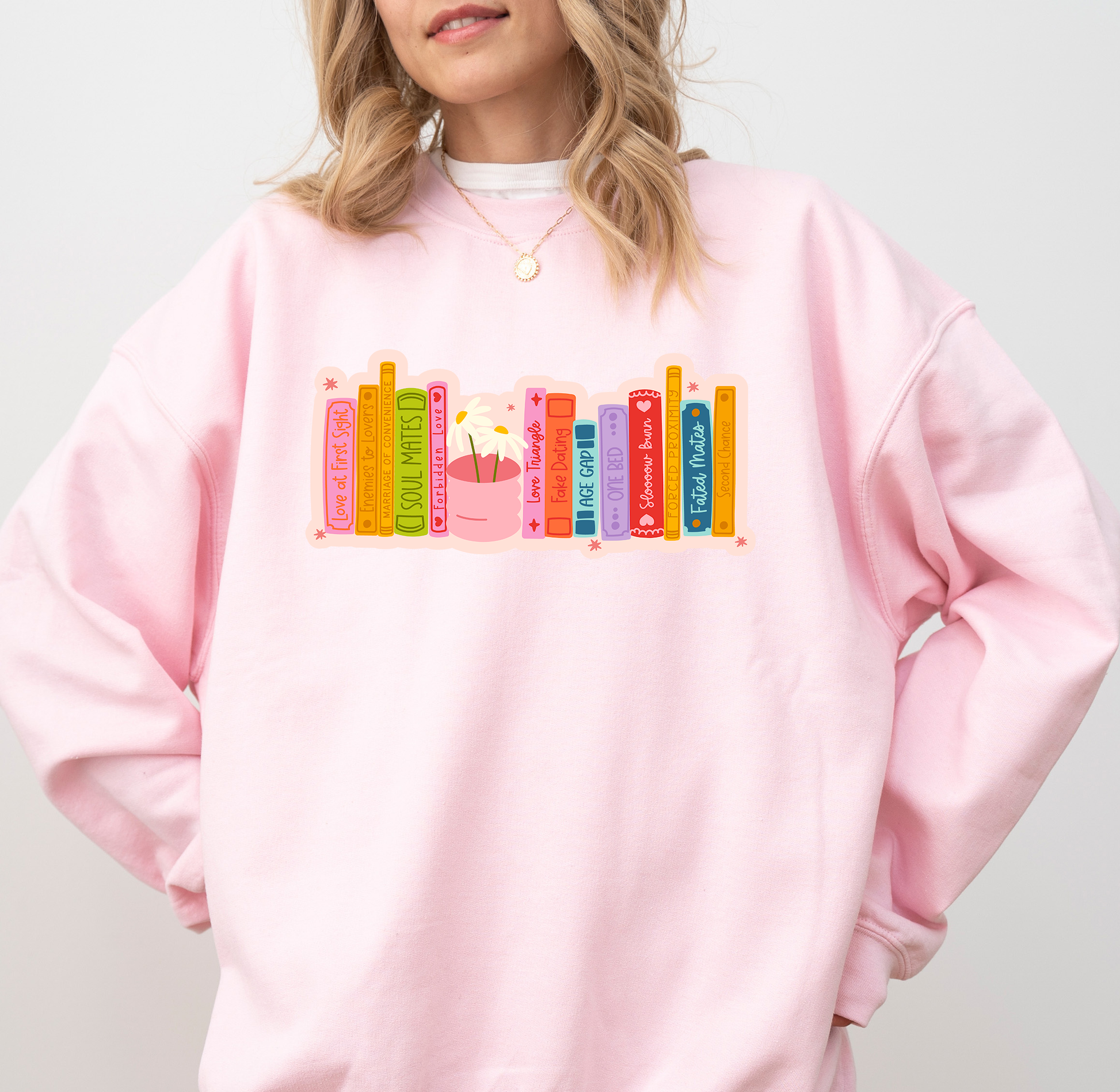 This warm and comfy sweatshirt brings a soft pastel bookshelf illustration that’s perfect for readers who love colorful book aesthetics. Ideal for fall and winter reading sessions, book cafés, or lounging at home with your current read. A cute, stylish choice for bookish girlies who want comfort with personality.