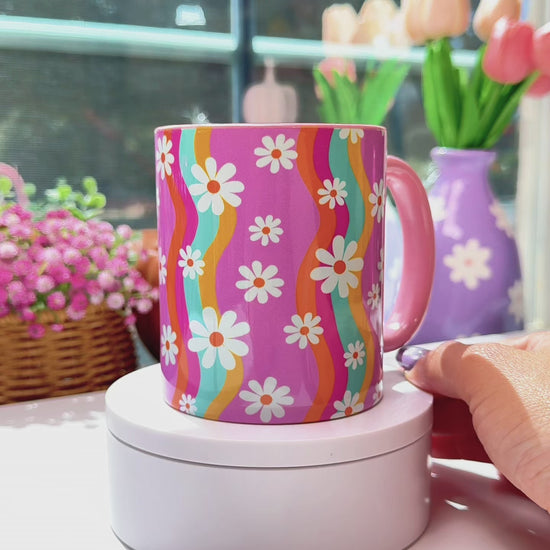 Its bold and playful look makes it a great gift for anyone who loves retro aesthetics, flower power vibes, or just wants to brighten their mornings with a fun cup.