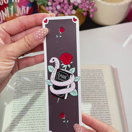This bookmark features a delicate snake wrapped around a dark romance book with a crimson rose — the perfect mix of elegance and temptation.