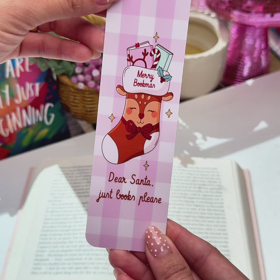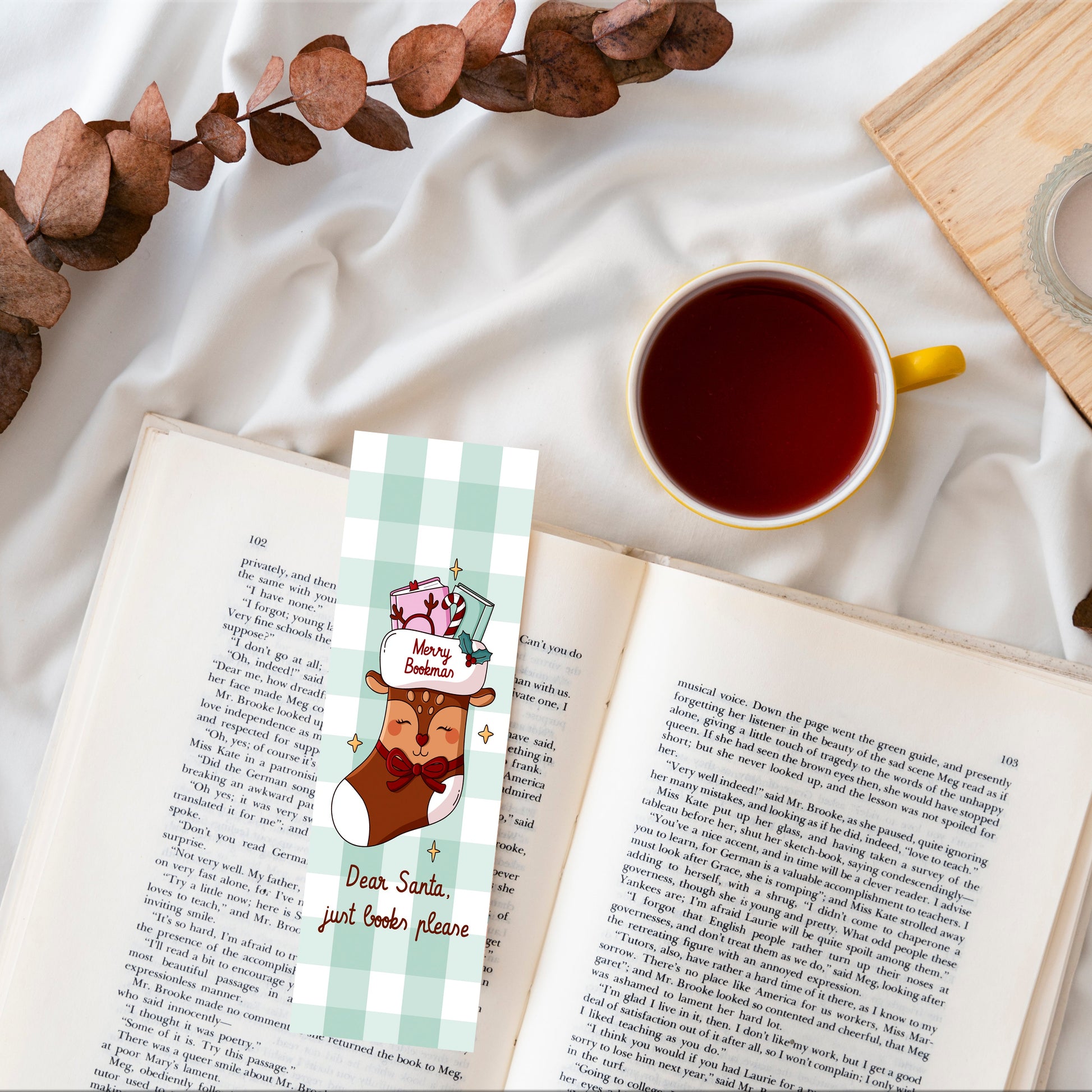 This adorable holiday bookmark features a cute bear in a Christmas stocking with the sweetest request — “Dear Santa, just books please.” A must-have for cozy winter reading and the perfect stocking stuffer for every book lover!