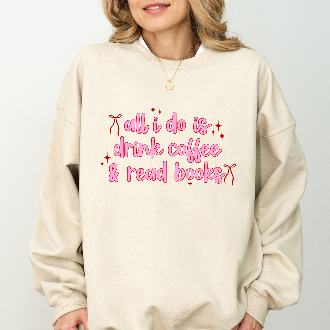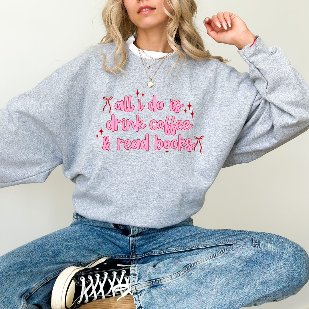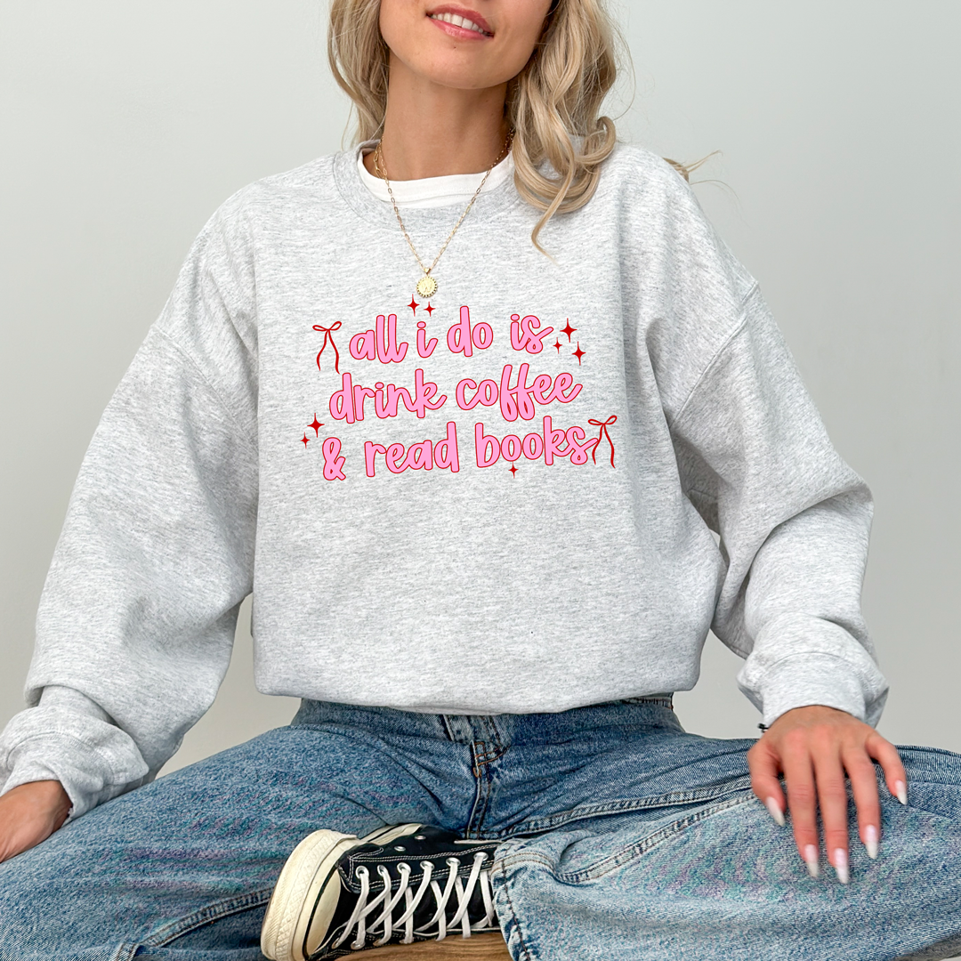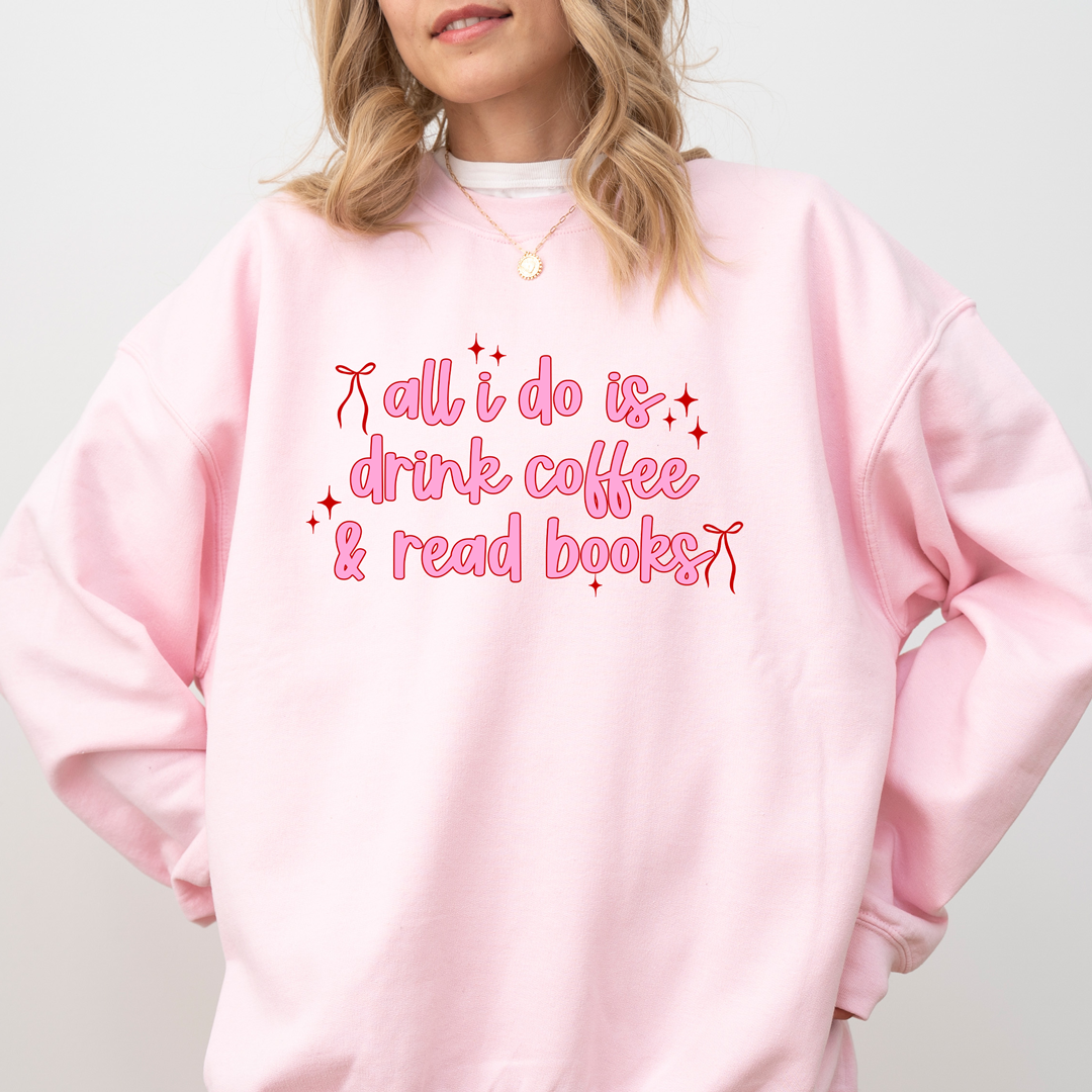 Cozy up in style with this adorable “All I Do Is Drink Coffee & Read Books” sweatshirt – the perfect blend of bookish charm and coffee lover vibes. With a soft, relaxed fit and a cute pink design, this sweatshirt is ideal for chilly days at home, trips to the bookstore, or casual coffee dates. A thoughtful gift for bookworms, cozy aesthetic lovers, and anyone who can’t live without coffee and books.