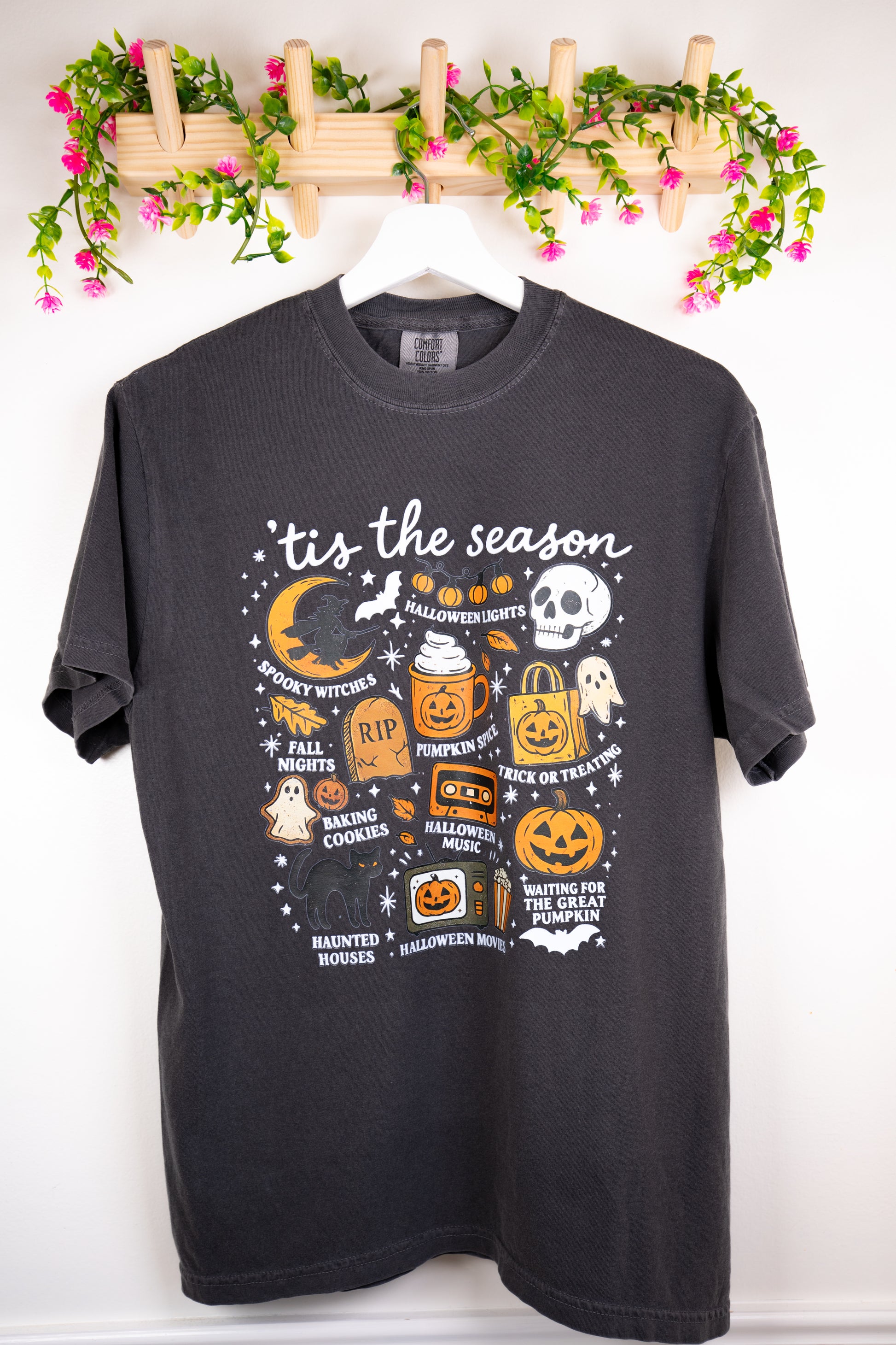 Celebrate all your favorite Halloween traditions in one adorable tee! From spooky witches and pumpkin spice to haunted houses and trick-or-treating, this comfy t-shirt captures the magic of the season in the cutest way possible.