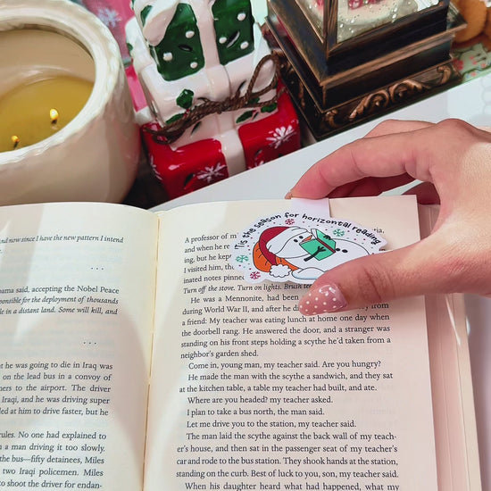 Featuring a relaxed snowman with a Santa hat and book, this adorable magnetic bookmark celebrates the best way to spend the holidays — reading horizontally!