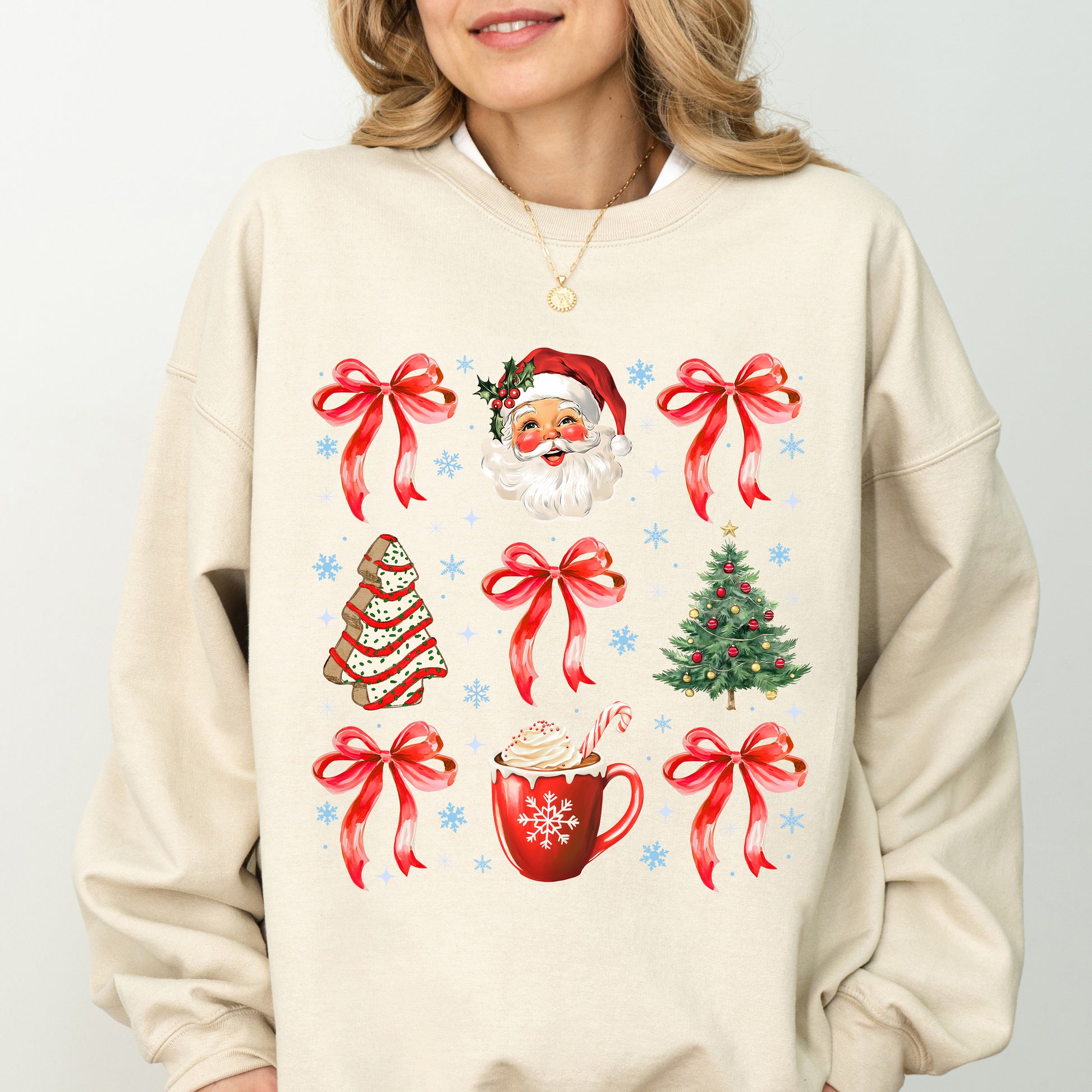 Celebrate the season with a touch of nostalgia! This festive sweater features a delightful collage of vintage-style Christmas icons — Santa Claus, holiday bows, cozy cocoa, and sparkling trees. A perfect mix of retro charm and cozy holiday spirit, it’s ideal for anyone who loves classic Christmas aesthetics with a playful twist.